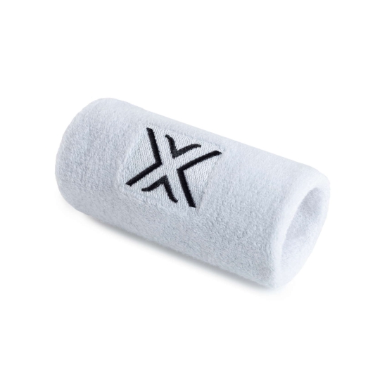 Logo de la marca al centro. Pack de 2 muñequeras de felpa extra ancha.