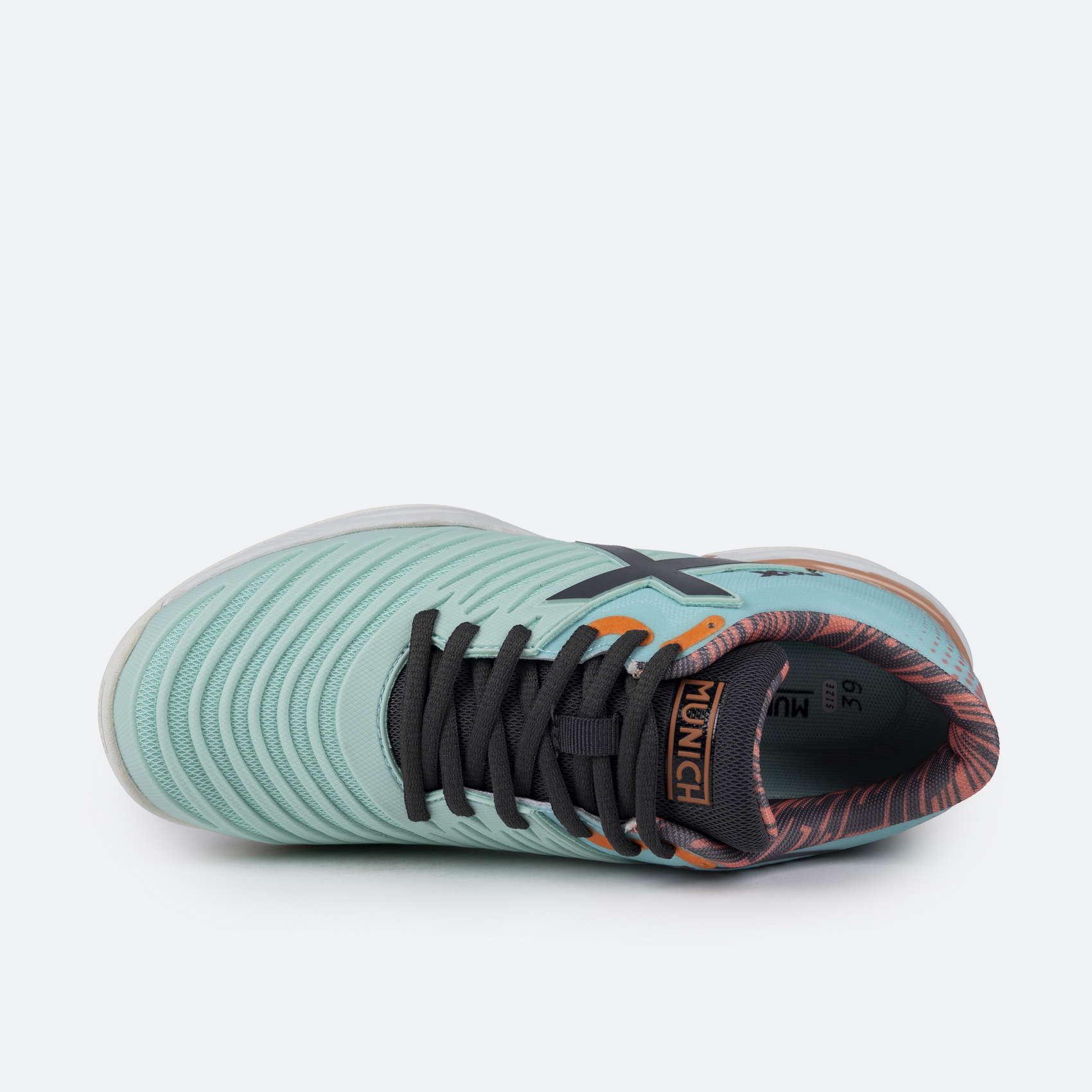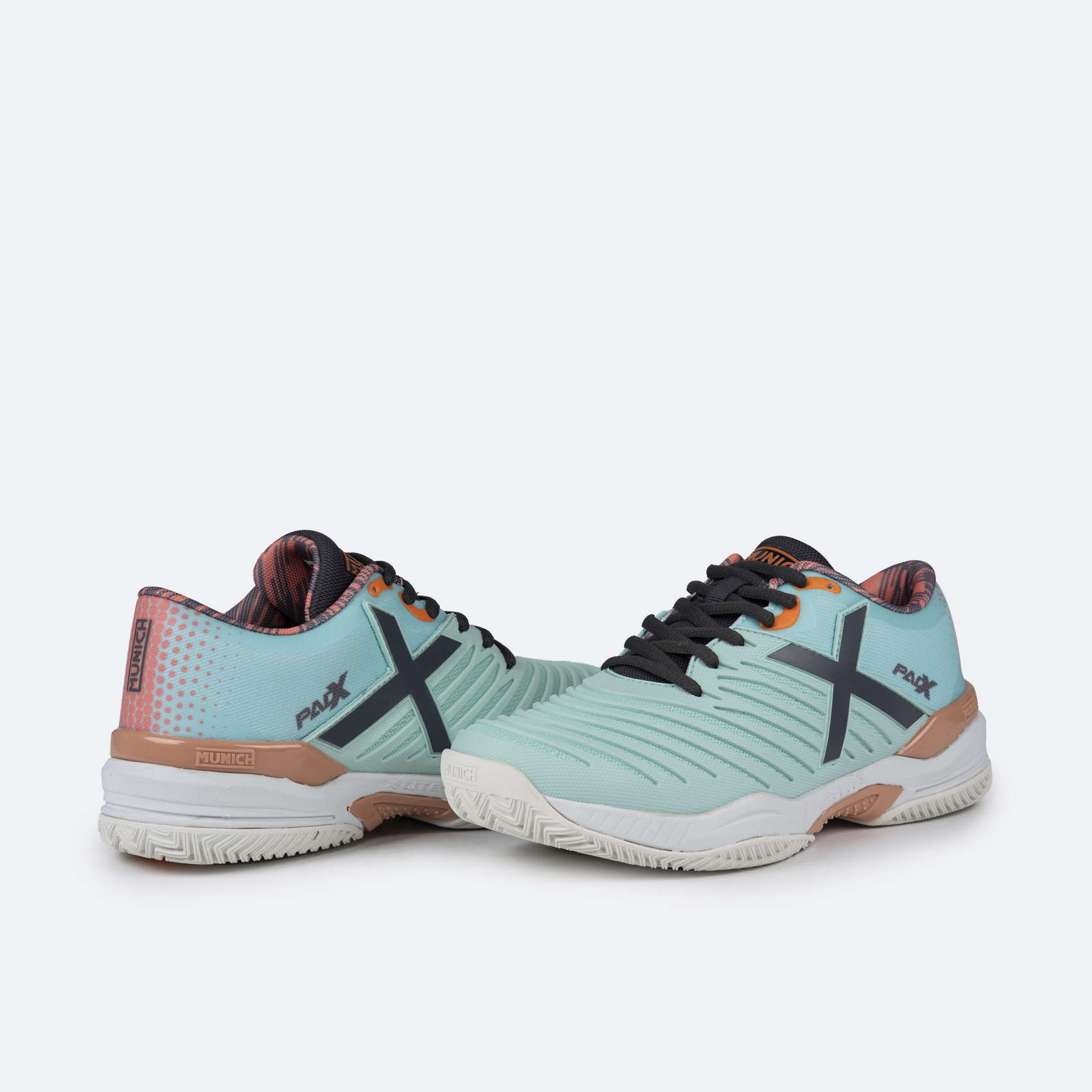 Fluye en las pistas de pádel. La PAD X es el modelo caracterizado por su resistencia en la zona del empeine gracias a la pieza de TPU inyectado que estructura la base de tejido y que a la vez aporta resistencia a la abrasión en las partes más sufridas.